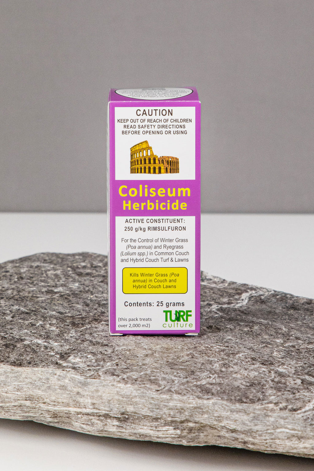 For the selective control of Wintergrass & Ryegrass in Couch & Hybrid Couch. Allows control of the various genotypes of Wintergrass & Ryegrass that other herbicides have struggled to manage, *Only safe to use in Couch & Hybrid Couch Lawns. 25g of Coliseum can treat up to 2500sqm.